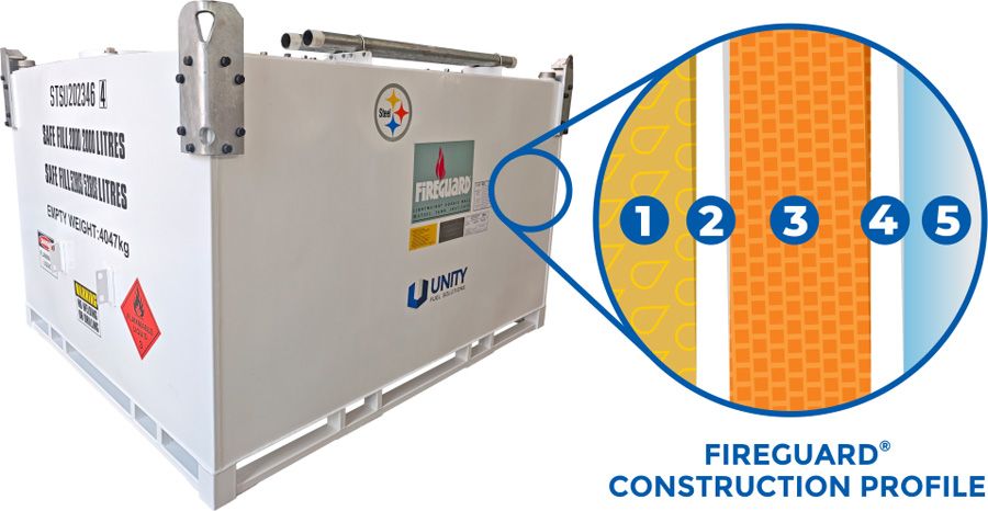 WARRANTY DISCLAIMER: All Fireguard® tanks are backed by industry-leading warranties, subject to terms and conditions. Warranties cover manufacturing defects only and exclude damage from improper installation, misuse, unauthorized modifications or any defects incurred by failure to implement ongoing maintenance in line with recommended schedules. For full warranty details, contact Unity Fuel Solutions.